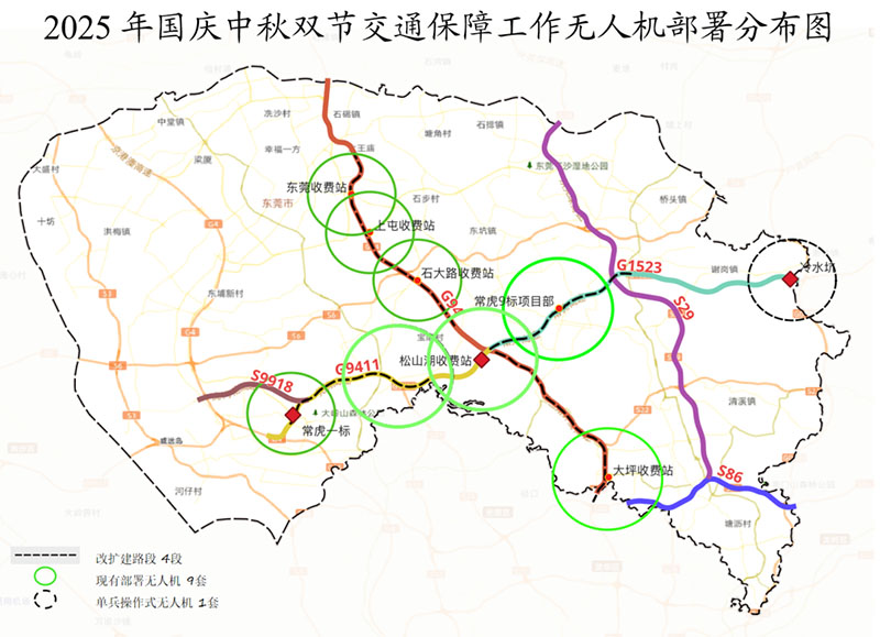 與往年不同的是,今年國慶中秋長假期間,東莞市低空經(jīng)濟(jì)發(fā)展有限公司(以下簡稱“低空經(jīng)濟(jì)公司”)在東莞交控集團(tuán)的統(tǒng)籌安排下,以“機(jī)巢式無人機(jī)+單兵操作式無人機(jī)”協(xié)同作業(yè)模式,整合兩者優(yōu)勢,形成“定點駐守+靈活巡查”的立體作業(yè)體系,對重點交通堵點實現(xiàn)精準(zhǔn)覆蓋,與固定監(jiān)控相互補(bǔ)充構(gòu)建空地一體化動態(tài)監(jiān)控網(wǎng)絡(luò),為廣大市民出行的通暢與安全提供技術(shù)保障。